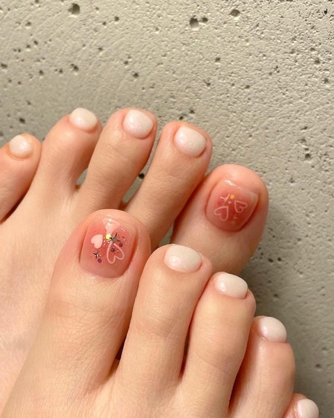 Nếu bạn muốn thể hiện cá tính mạnh mẽ hơn, những mẫu nail chân hồng thạch có họa tiết như hoa, hình trái tim hay điểm nhấn kim tuyến sẽ là sự lựa chọn hoàn hảo. Những chi tiết nhỏ này không chỉ làm nổi bật đôi chân mà còn thể hiện sự sáng tạo và phong cách riêng của bạn.